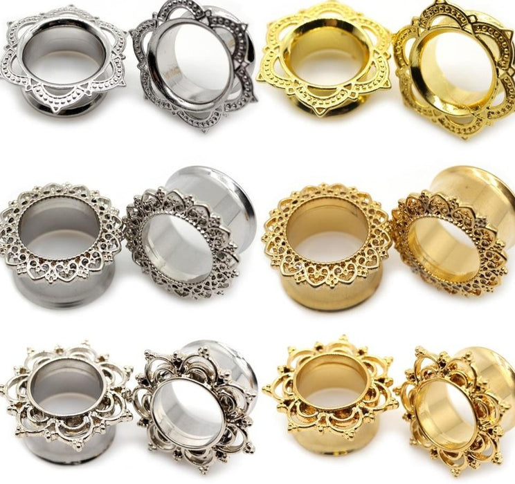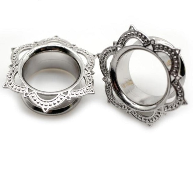 Ohrstecker-Tunnel-Expander aus Edelstahl mit Blumenmotiv, 6 mm – 25 mm