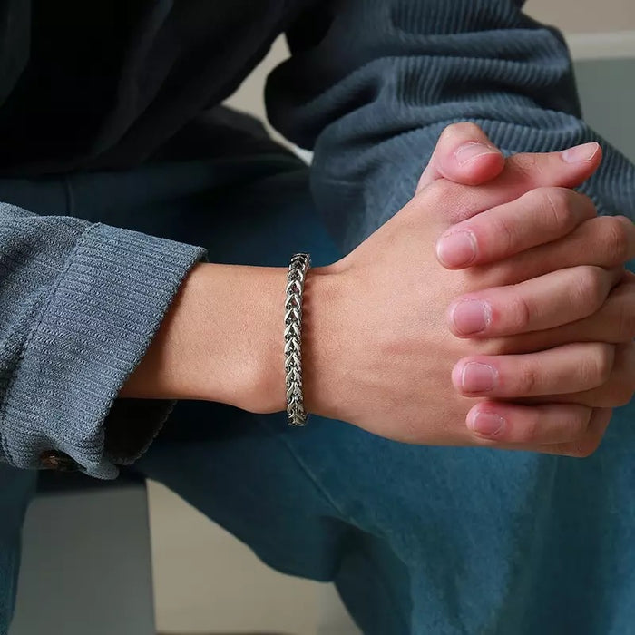 Lassen Sie Ihrer Kühnheit freien Lauf mit unserem Edelstahl-Kettenarmband für Herren! Dieses Armband aus robustem und langlebigem Edelstahl verfügt über ein stilvolles Gliederkettendesign von 3 mm bis 10 mm. Verbessern Sie Ihren Stil und genießen Sie den Nervenkitzel des Risikos mit diesem unverzichtbaren Accessoire.