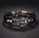 Men’s Leather Surfer Bracelet Black Anchor Stainless Steel
