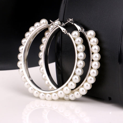 Vollständige Details anzeigenGroße Creolen mit Perlen, 5 cm