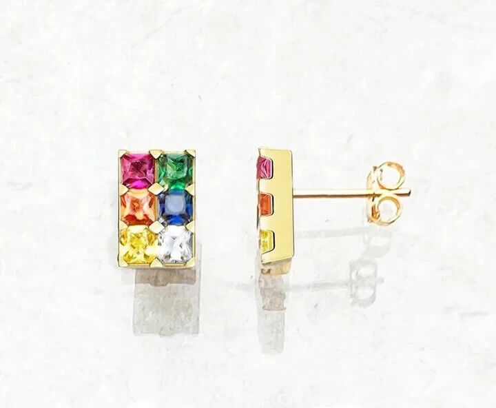 925 Sterling Silver Rainbow Block Squares Stud Earrings