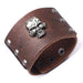 Men's Wide Leather Skull Head Bracelet