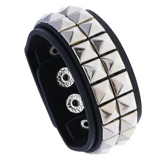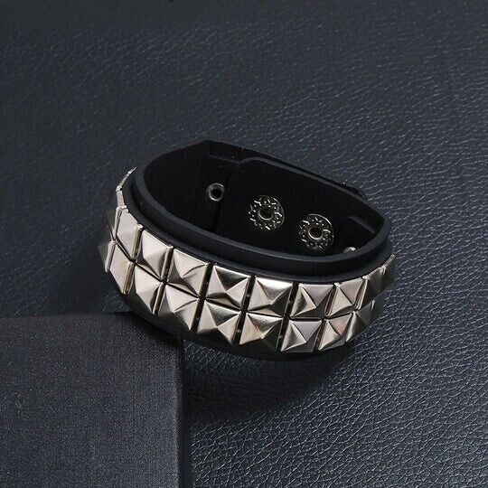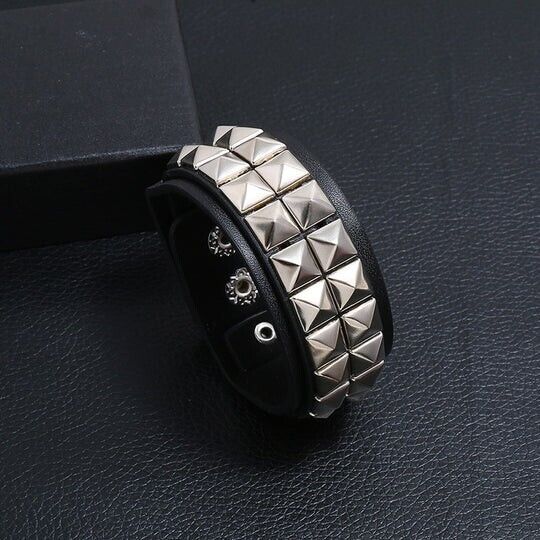 Elevate your accessory game with this stunning Two Row Pyramid Studded Leather Wristband from Halo's London. Crafted with high-quality Leather, this bracelet boasts a unique pyramid shape and is perfect for any occasion, especially Mother's Day. The bracelet features a beautiful stud design and is made with premium leather material, making it both durable and stylish.
