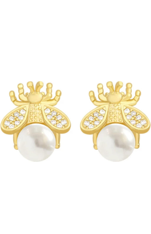Afficher tous les détailsGold Bumble Bee Stud Earrings with Simulated Pearl