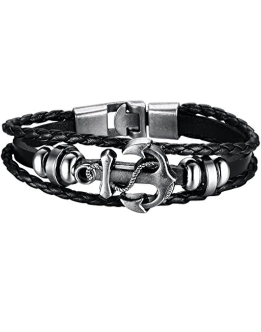 Afficher tous les détailsMen’s Leather Surfer Bracelet Black Anchor Stainless Steel