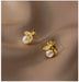 Gold Bumble Bee Stud Earrings with Simulated Pearl