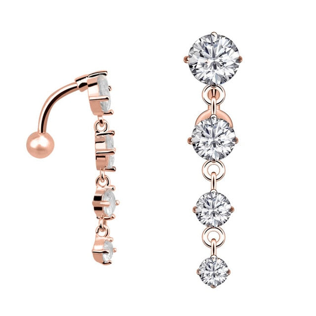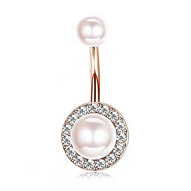 Surgical Steel Curved Crystal Barbell Belly Button Ring Collection