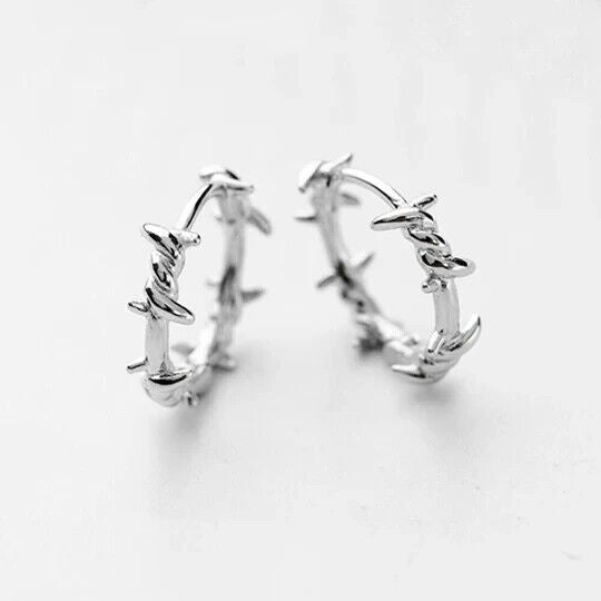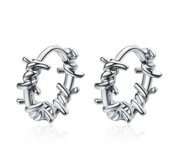 Unleash your edgy side with our Sterling Silver Barbed Wire Hoop Earrings. Crafted with high-quality sterling silver, these earrings feature a unique barbed wire design that will add a touch of boldness to any outfit. Perfect for those who want to stand out and make a statement!(Don't get caught up on these earrings, they're just too stylish to resist!)