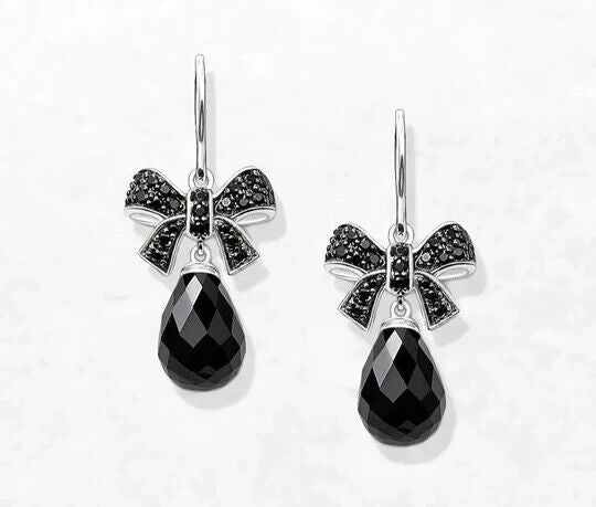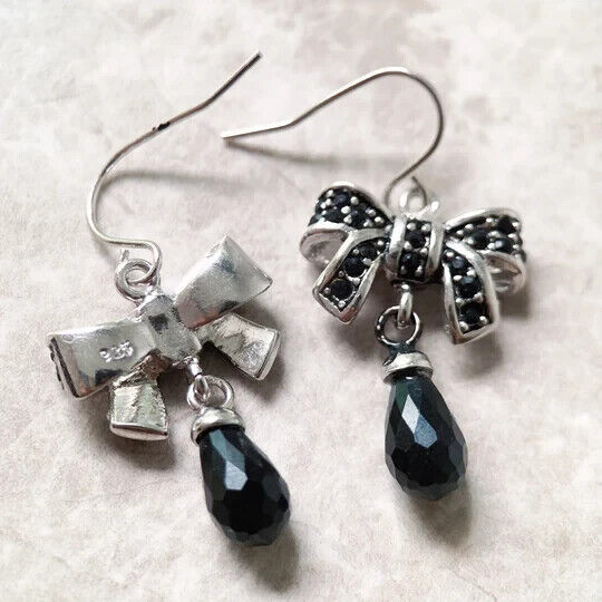 Indulge in luxurious elegance with our Sterling Silver Black Bow Water Drop Earrings. Crafted with premium sterling silver and adorned with a stunning black bow and water drop-shaped gem, these earrings exude sophistication and charm. Elevate any outfit with this exquisite accessory.