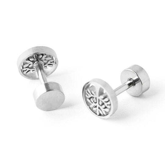 These tree of life barbell stud earrings are a unique and meaningful addition to any jewelry collection. Crafted in a barbell style, they feature the iconic symbol of the tree of life, representing interconnectedness, growth, and harmony. The tree of life design is intricately detailed, with branches extending outward and roots reaching deep, symbolizing the balance and interconnectedness of all living things.